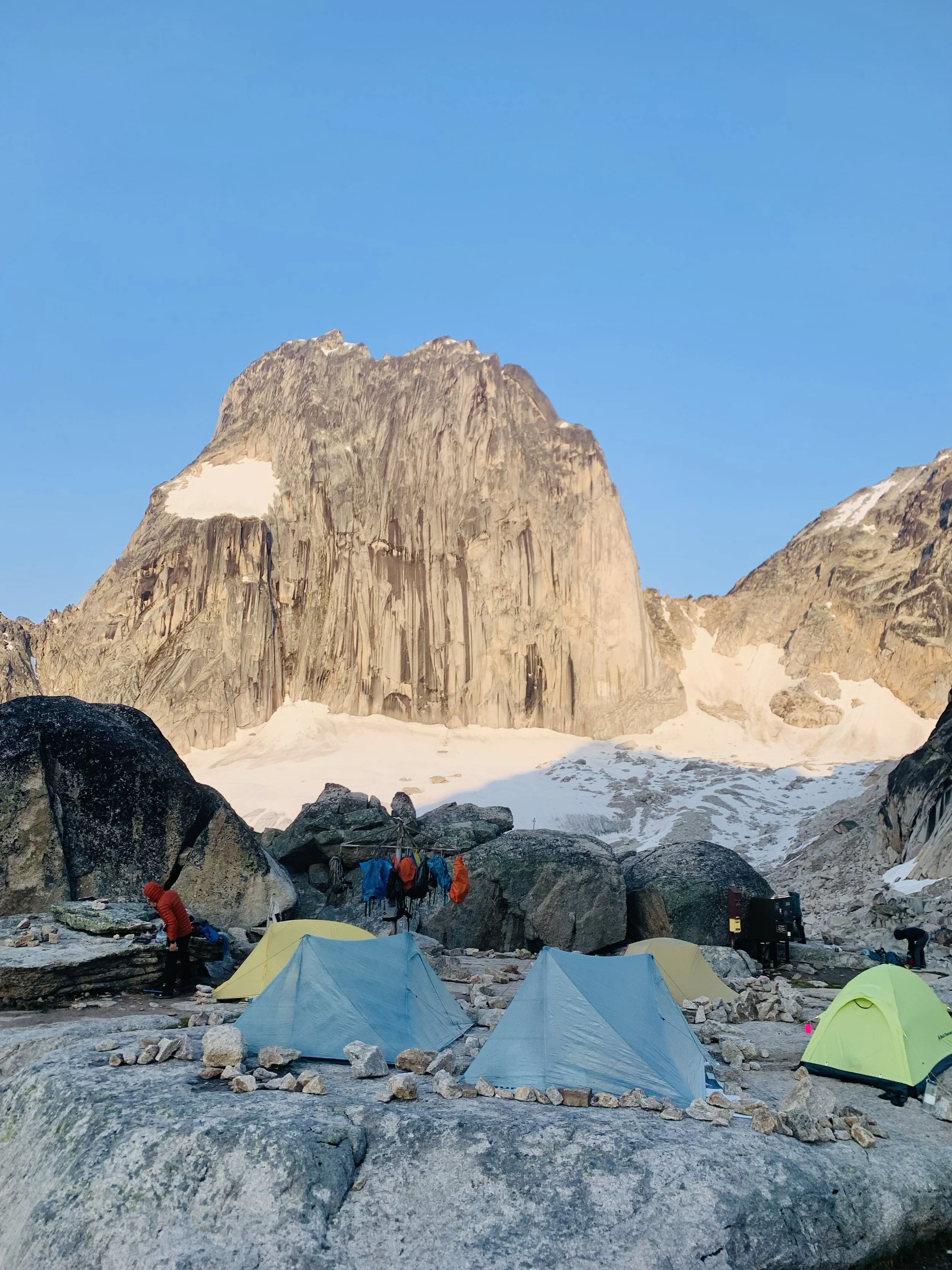 Last little story. I visited Bugaboos recently with some friends, one of Canada's most famous alpine climbing areas. We had planned to climb Pigeon Spire, a classic 5.4 grade climb/scramble, 6-10hr return. We camped the night and rose early to beat the crowds. I woke up to the 5:15 am alarm and sat up in bed, incapable of putting on my shirt. An anxiety storm started to brew as I thought of what was ahead. I was at the end of a week of little sleep and my partner whom I heavily relied on would only be joining our group part of the way. I was already in a puddle of tears. I crawled out of the tent and cried to our friends and told them I couldn’t go with them. I knew if this was the state of mind I was in now it would be unfair to continue and bawl my eyes out on the way up over snow, glacier, steep ridges and exposed climbing. Although I was embarrassed to bail and fall apart, I knew I needed to stop and stay this time mentally. We hugged and they left. I happily stayed and sat and stared at rocks, finding a spot of calm and another way to enjoy the mountains.